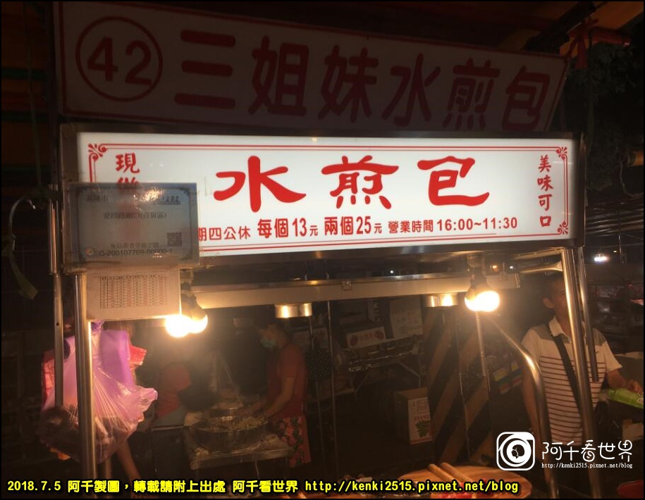 五、糖葫蘆邊的三姐妹水煎包也是賣的嚇嚇叫,阿千是沒吃過拉!但朋友都愛吃!2018.7.3的價錢如下~營業時間和周四公休