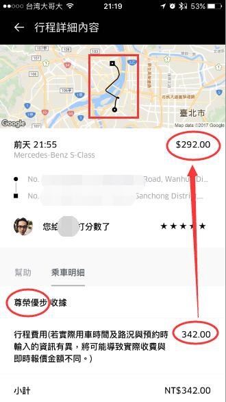 搭完都有完整的明細,以及你可以對司機做評分等等,不錯的司機也請給他5星評嘿!千萬別亂評對方,要不然這司機很可憐
