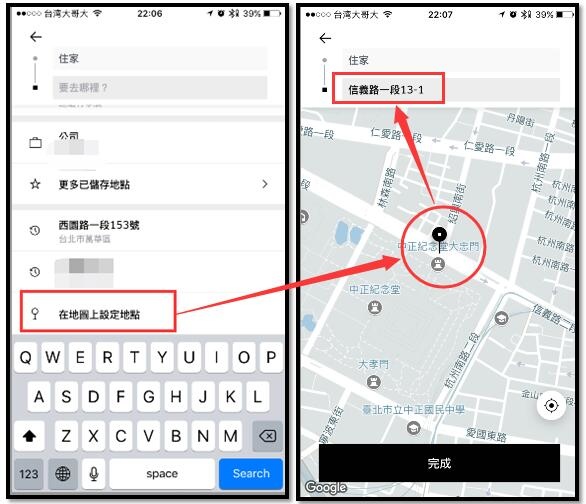 (1) 上車地圖以及下車地點設定,可以用『在地圖上設定地點』這樣你可以更準確知道你上下車位置