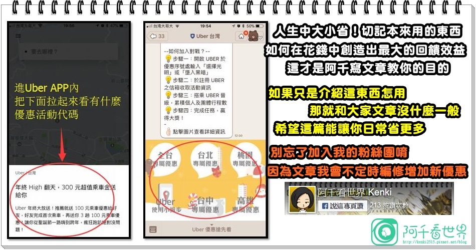 目前Uber也不定時有活動序號提供,你可以加入他們粉絲團以及官方LINE帳號,就可以看到最新免費搭乘的序號唷!