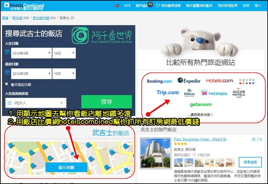 挑到他幫你抓的那個訂房網的價錢是最划算的,同時你可以先透過左邊的【檢示地圖】先查這一區有那些飯店,用來查找離地鐵近的