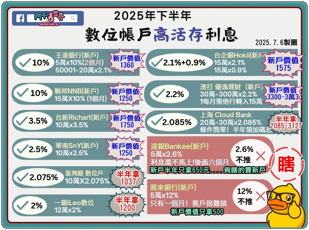 | 王道銀行 2025/12/30 (舊戶) 點我開戶 |