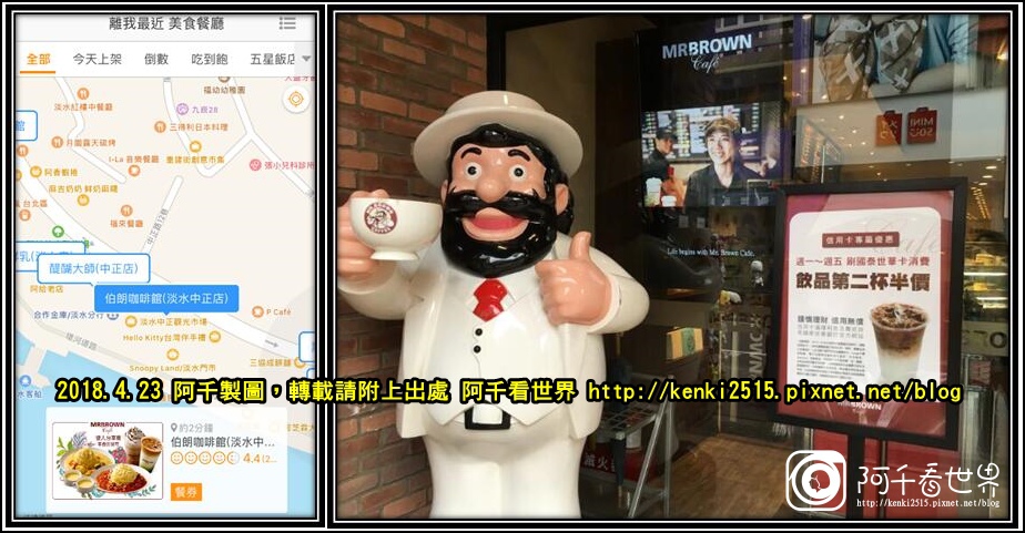 另外如果你跟阿千一樣很愛挑一個氣氛的咖啡廳下午簡餐的餐廳,其實這裡淡水河畔邊也有幾家知名的店,只是我下午已吃了!