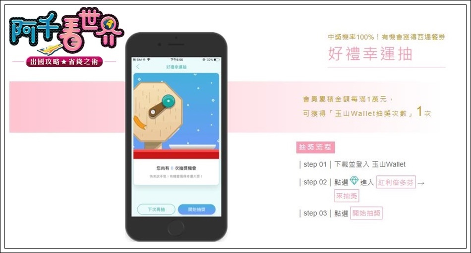 你以為只有這樣子嗎?沒有唷!你Only卡的消費只要累積到一萬就可以在玉山wallet內抽獎一次(中獎率是100%),生日當月更大方送你抽三次,趕緊去安裝《玉山wallet》完全整合了你的「紅利倍多芬」的消費情況和等級,讓你相當清楚!