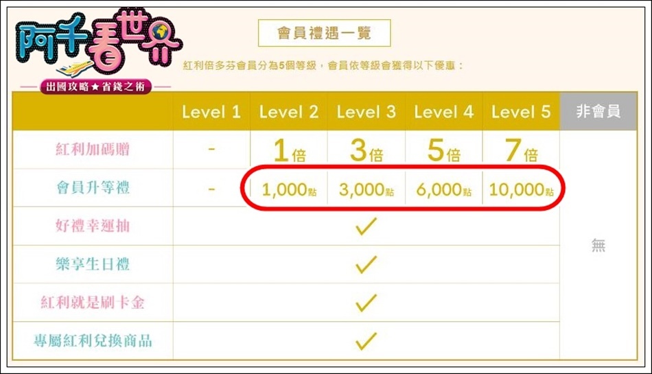 🔹 首先享有每升一級的升級紅利獎勵:因為目前直升LV3,所以你日後升級也只有LV4和LV5的升等禮可拿