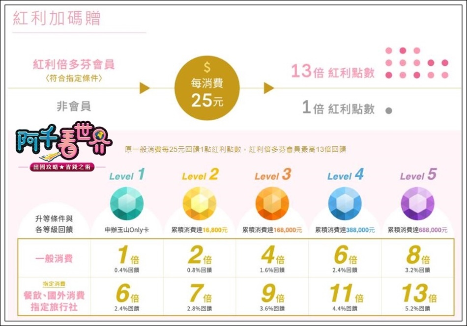 紅利如何獲得!怎樣拿最多在上面都有提到過了,這裡就針對【紅利倍多芬】的等級來做說明,你若是哩程刷卡大戶,現在跳來這裡後該怎麼消費操作是上上之策呢?