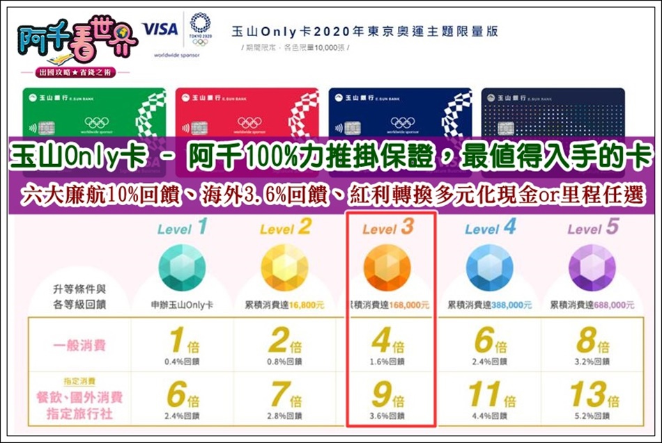 🔹「限時LV3送你」:今年申辦的人立即直升LV3的回饋比例 【一般消費1.6%、指定消費3.6%】指定你可以更簡單的看成海外消費即可