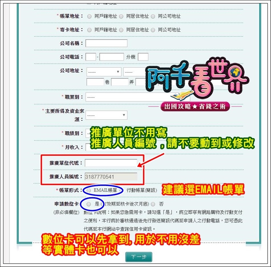 ❗ 推廣單位代碼不用填,但推廣人員編號會自動代入不要去修改(這樣才符合跟阿千團抽蘋果手錶),若這裡沒看到編號,請重新來一次!要不然你不符合資格我也沒辧法