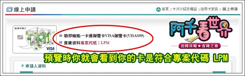 在預覽申請書時,你可以看到你這次申請是符合《專案代碼 LPM》就算是跟團到阿千的抽手錶的資格囉!
