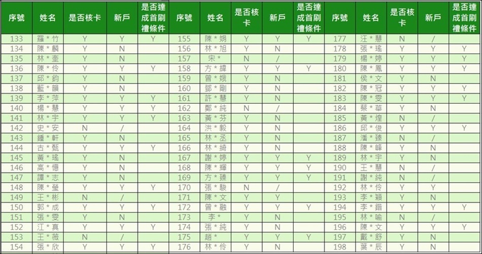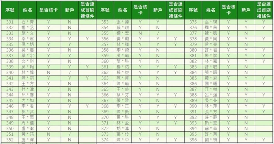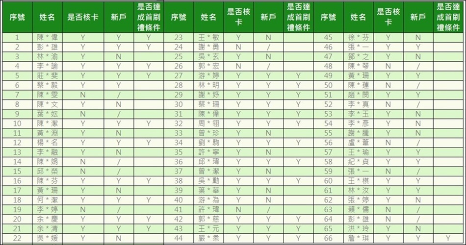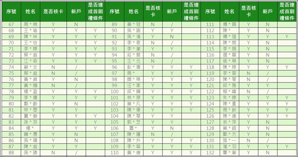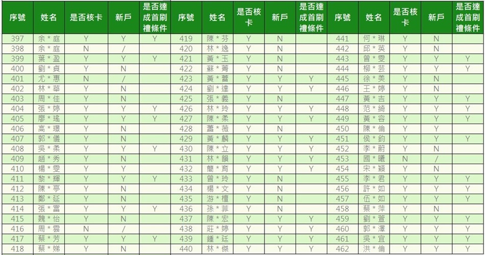 請大家看一下自己的名單有沒有在裡面,這都聯邦系統查的,如果你是新戶被標成不是新戶為N,請至電聯邦客服詢問為何!