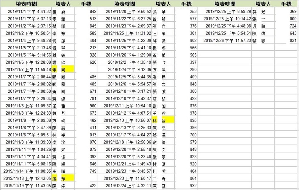 已填EXCEL表單的,有被我標黃色的,代表你資格不齊全,請自己FB私訊我你是誰資料補一補,沒補我會踢除你抽獎資格
